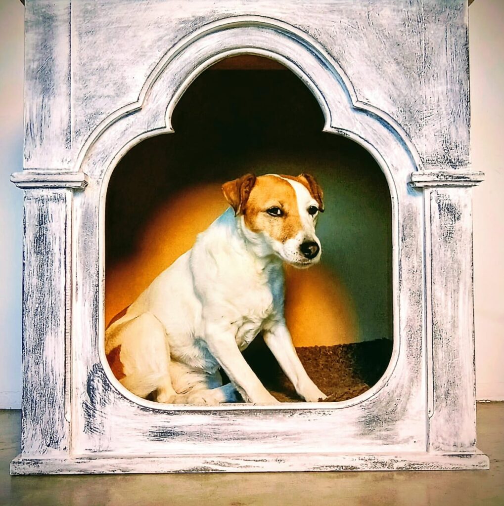 En sus diseños para mascotas une su amor por los animales con la funcionalidad y la estética del hogar, creando piezas que integran a cada mascota como parte de la familia.